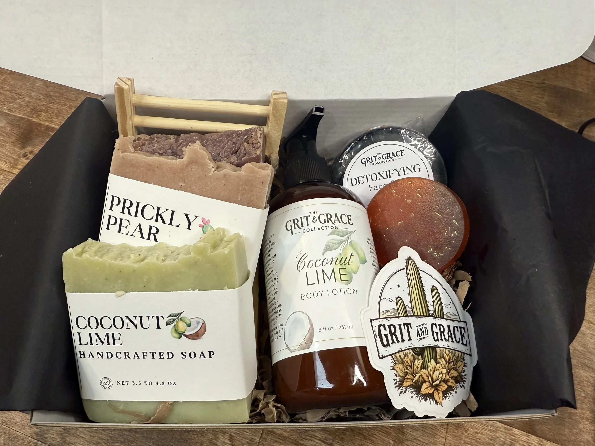 Shop the Collection Gift Boxes and Bundles Give the gift of grit & grace. Curated sets of our best-selling soaps, lotions, and candles, beautifully packaged and ready to share. Perfect for any occasion. The Renewal Ritual Set $55.00 The Essentials $42.00